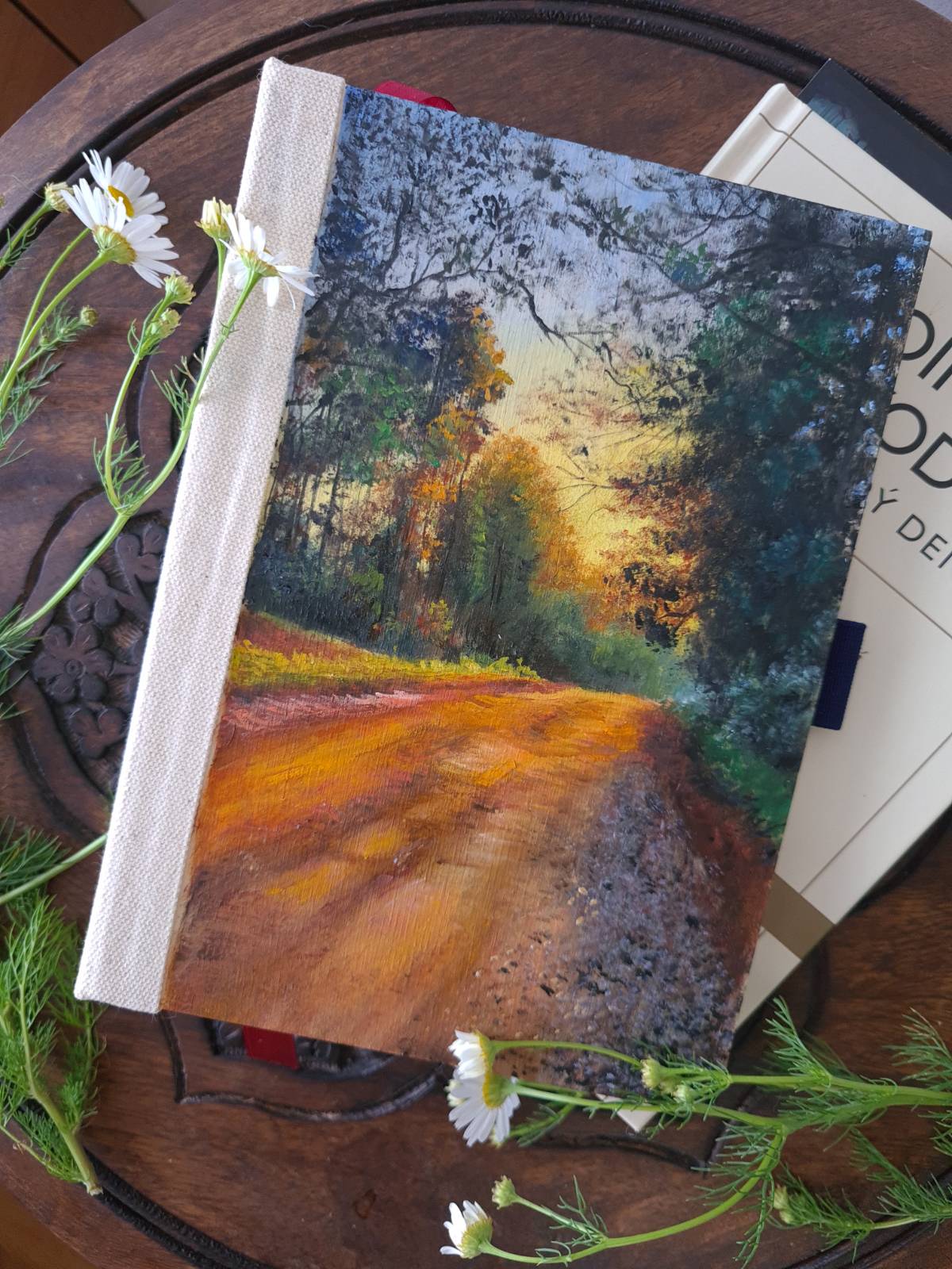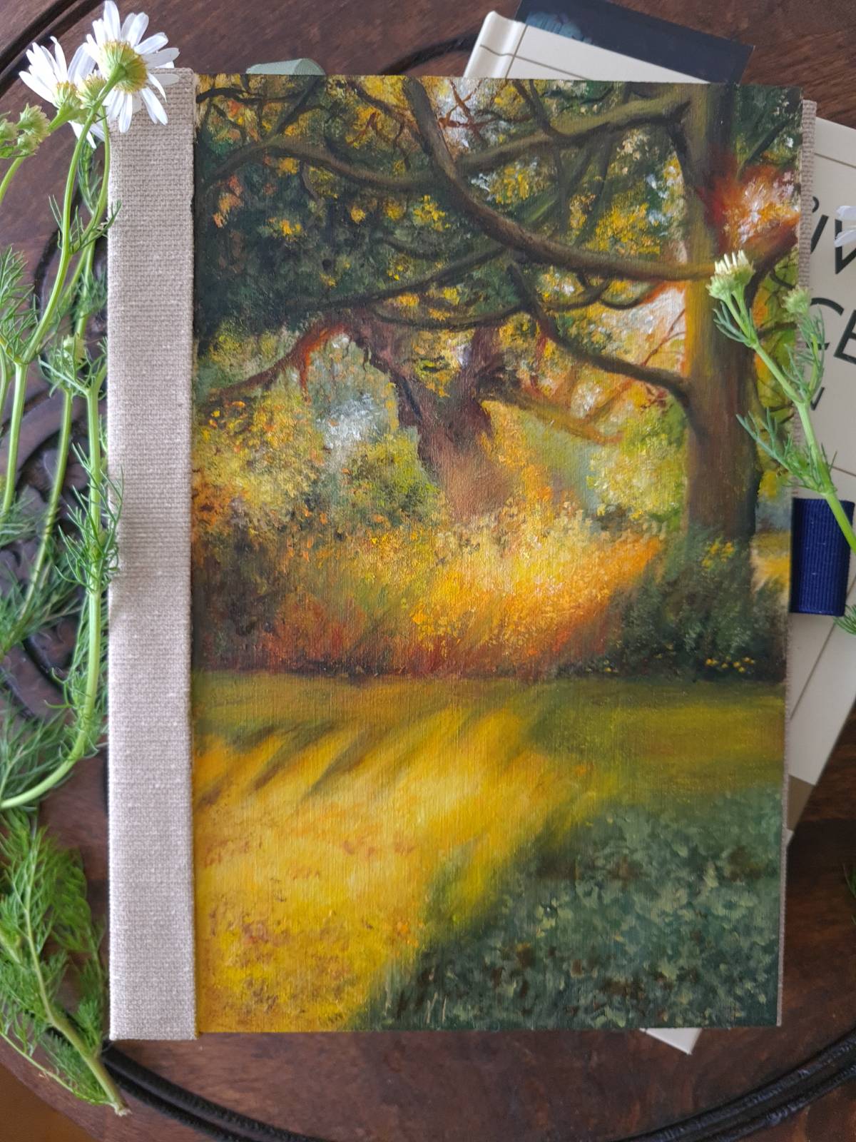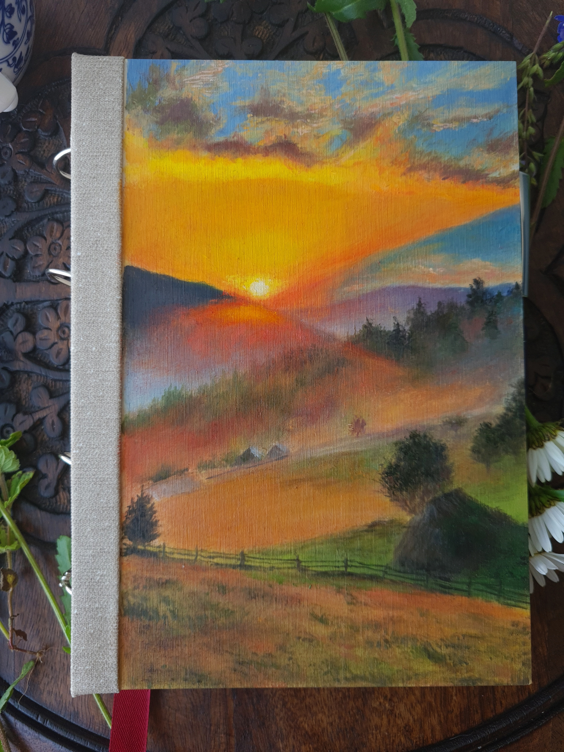 A5 ručně vyráběný deník s originální olejomalbou s vyměnitelnými listy